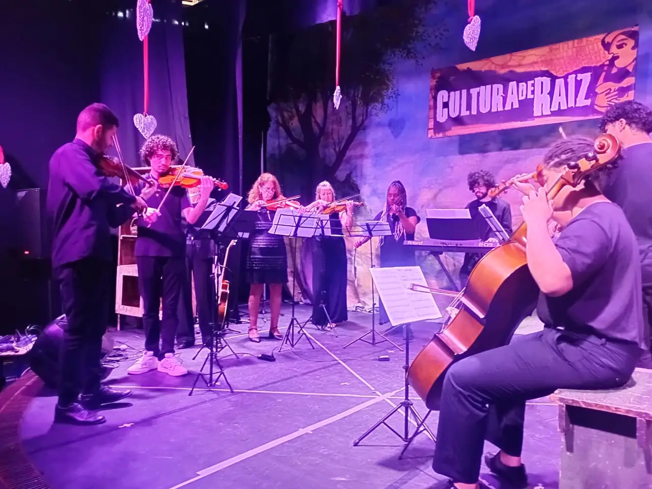 A Camerata Vivace, sob a batuta de Yuri Rodrigues, também se apresentou, criando uma atmosfera musical envolvente. Com a melodia de violino, violoncelo e flauta, o grupo executou a encantadora e comovente canção natalina "Noite Feliz", além de "Berimbau", de Baden Powell, e "Anunciação", de Alceu Valença, que embalaram o público presente.