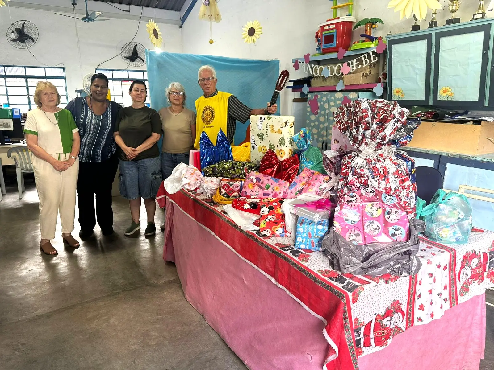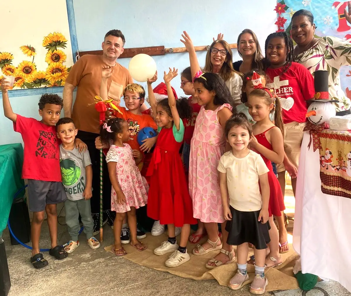 Tereza Alvarez, coordenadora do CRAS Meudon, que esteve presente com sua equipe, ressaltou: 'Além de muita brincadeira e um delicioso lanche com salgados, bolo e sorvete, as crianças tiveram a alegria de receber um Papai Noel muito animado, que distribuiu presentes gentilmente doados pelo Rotary Club Teresópolis, além de outros parceiros e colaboradores da rede socioassistencial do CRAS Meudon. Desejamos que as famílias que atendemos tenham um Natal repleto de felicidade, luz, esperança e fé'.