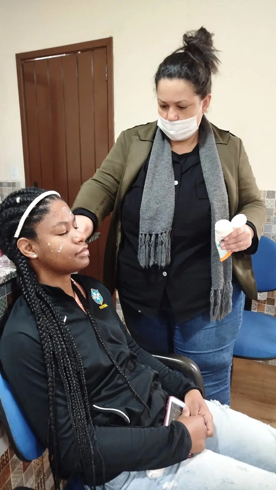 O evento, focado em acolhimento e informação, também incluiu serviços de cuidados pessoais, como limpeza de pele, e momentos de descontração com música.