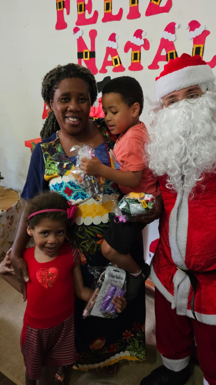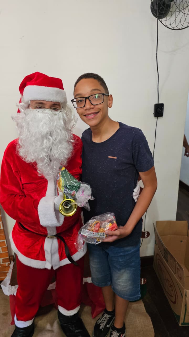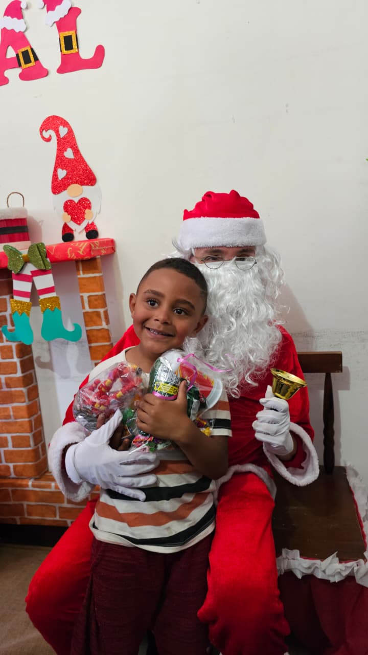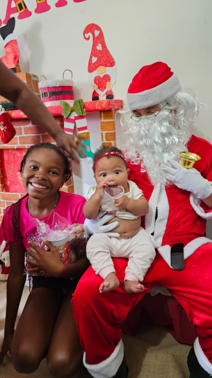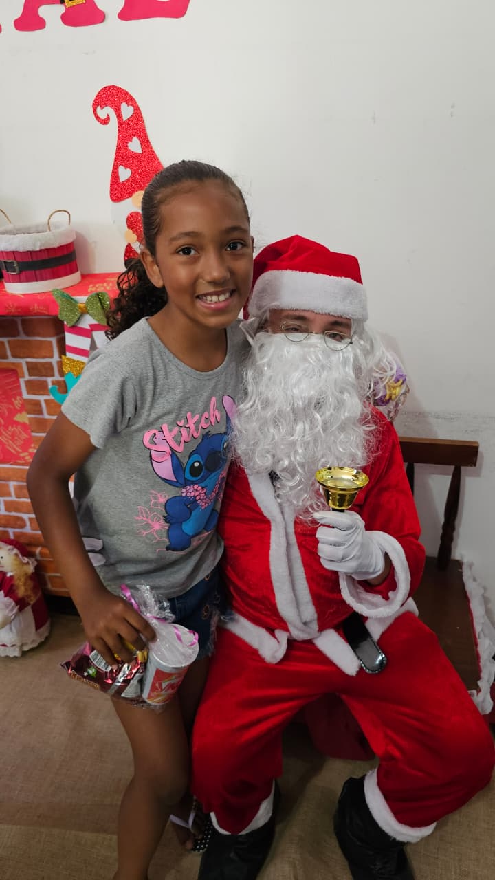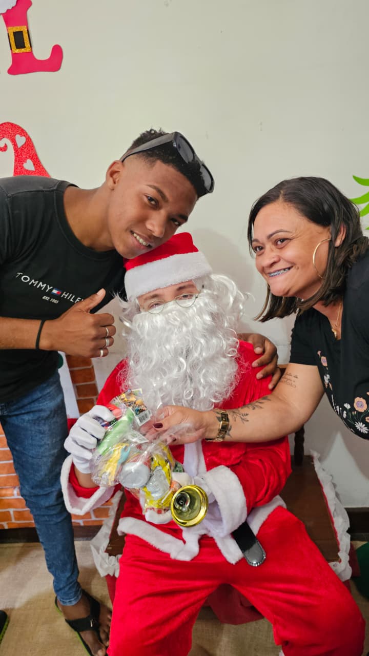 O clímax da confraternização foi, sem dúvida, a chegada triunfal do Papai Noel, que encantou as crianças com a distribuição de diversos presentes. Para complementar a atmosfera festiva, todos os presentes, incluindo crianças e adultos, receberam panetones, guloseimas e pequenas lembranças, assegurando que o espírito natalino contagiasse a todos.
