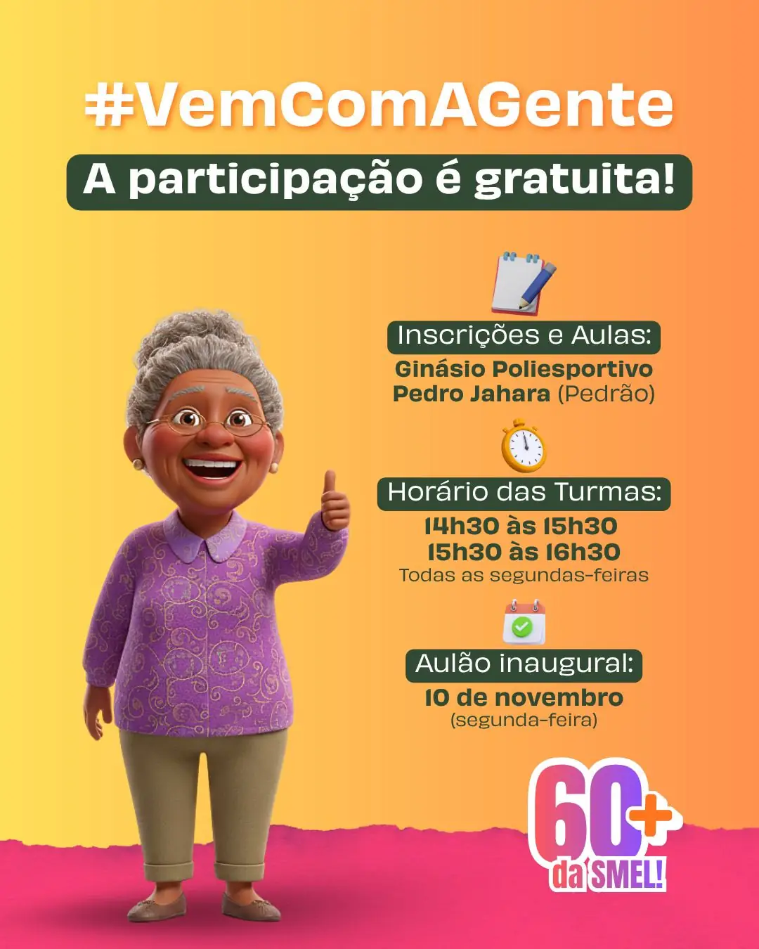 As aulas acontecerão semanalmente às segundas-feiras, com duas opções de horários: das 15h30 às 16h30 e das 16h30 às 17h30, no Ginásio Poliesportivo Pedro Jahara (Pedrão). As modalidades oferecidas incluem:
