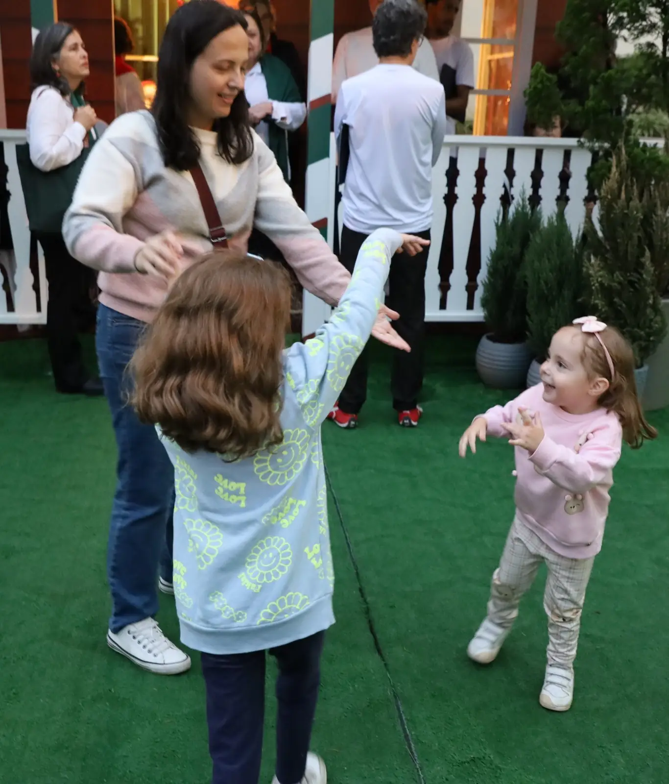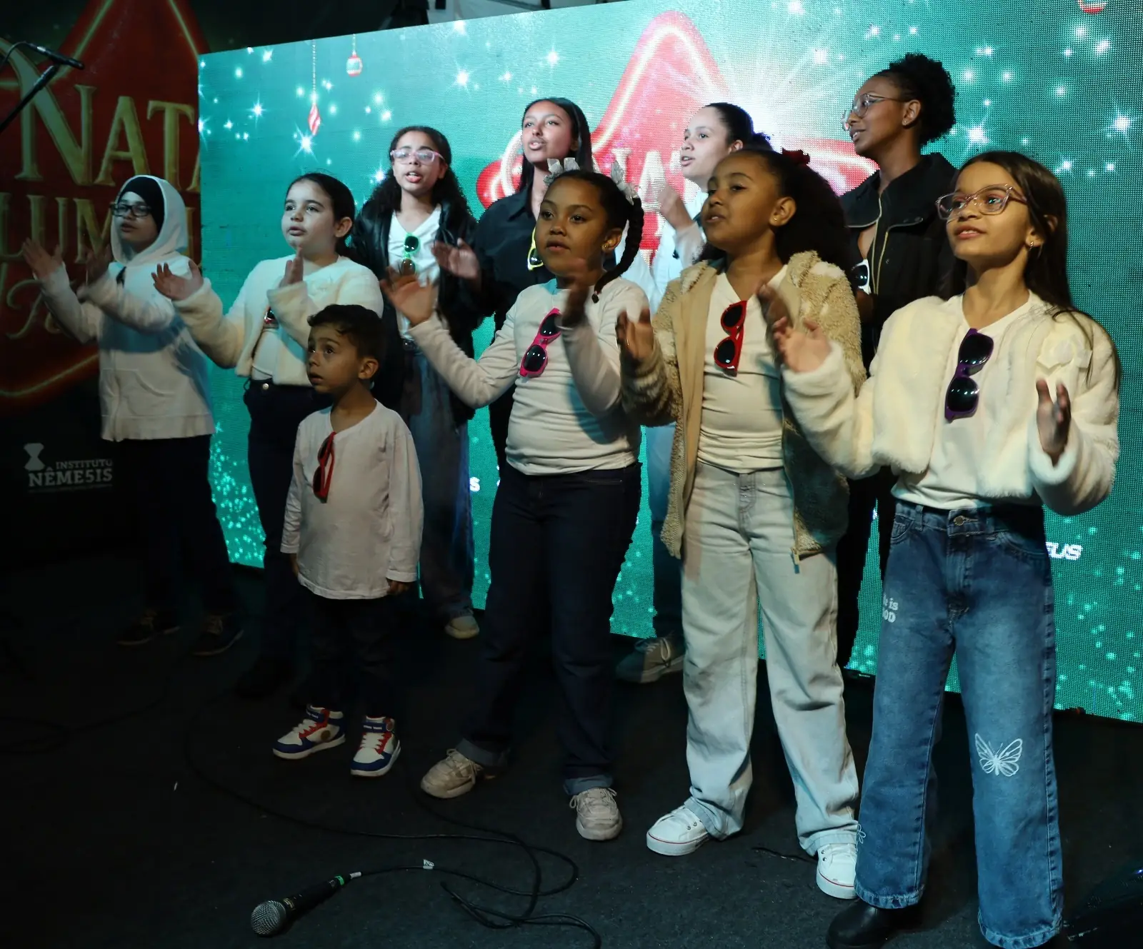 Em seguida, o Coro Infantojuvenil No Compasso Certo, da Igreja Batista Serrana, cativou a plateia com sua afinação impecável e coreografias ensaiadas, recebendo calorosos aplausos. A regente Gabi Rodrigues observou: "É gratificante ver tantas famílias se divertindo e aproveitando o evento. Teresópolis está maravilhosa, super iluminada, e realmente sentimos a chegada do Natal. Essas atividades contribuem significativamente para o enriquecimento cultural da cidade." Complementando a programação musical, o Coro Servus, igualmente da Igreja Batista Serrana, apresentou seu repertório de belas canções gospel.