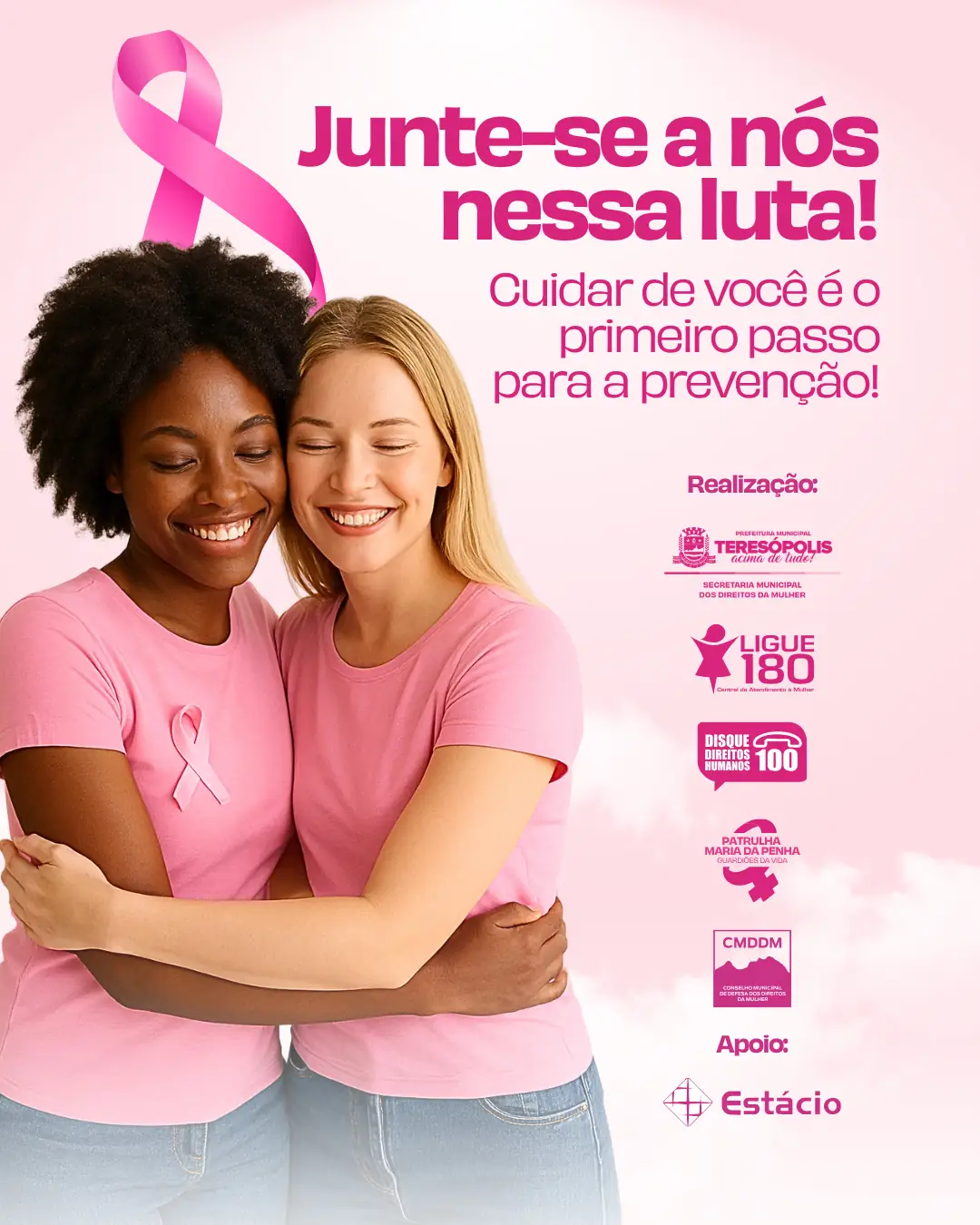 Em referência à campanha Outubro Rosa, a Prefeitura de Teresópolis, através da Secretaria Municipal dos Direitos da Mulher (SMDM), promoverá, no dia 24 de outubro, das 9h às 17h, o seminário denominado 'Outubro Rosa: Elas, por Elas! Na batalha contra o câncer de mama, o cuidado pessoal é um gesto de carinho'. O evento será sediado na Universidade Estácio de Sá.
