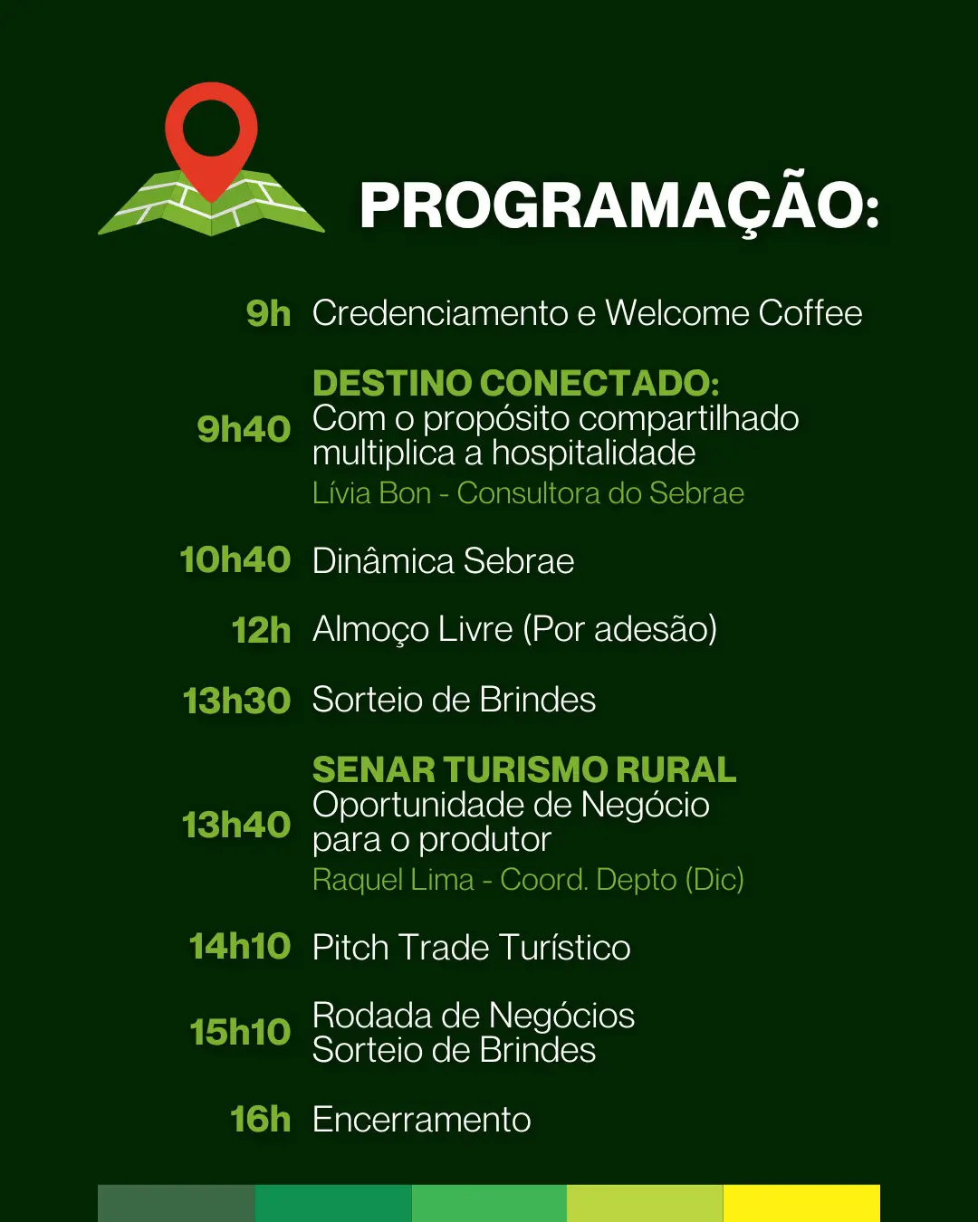 - Destaque para a palestra de Lívia Bon, consultora do Sebrae, que abordará o tema 'Destino Conectado'.