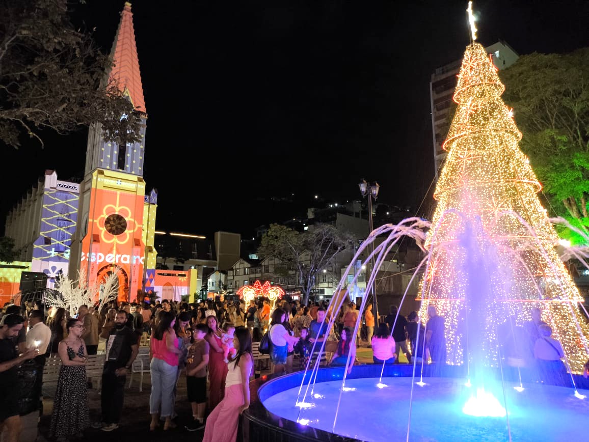 A proximidade do Natal conferiu a Teresópolis uma atmosfera radiante. Milhares de pontos luminosos agora adornam vias, praças e boulevards, convertendo a paisagem urbana em uma exibição visual deslumbrante que cativa residentes e turistas, especialmente após o anoitecer, quando a iluminação intensifica o ambiente festivo.